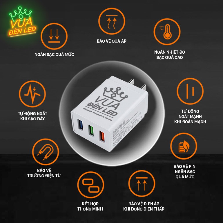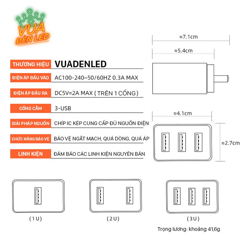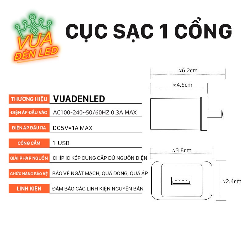TÊN SẢN PHẨM: Cục sạc USB 5V 2A VUA ĐÈN LEDTHÔNG TIN SẢN PHẨM: