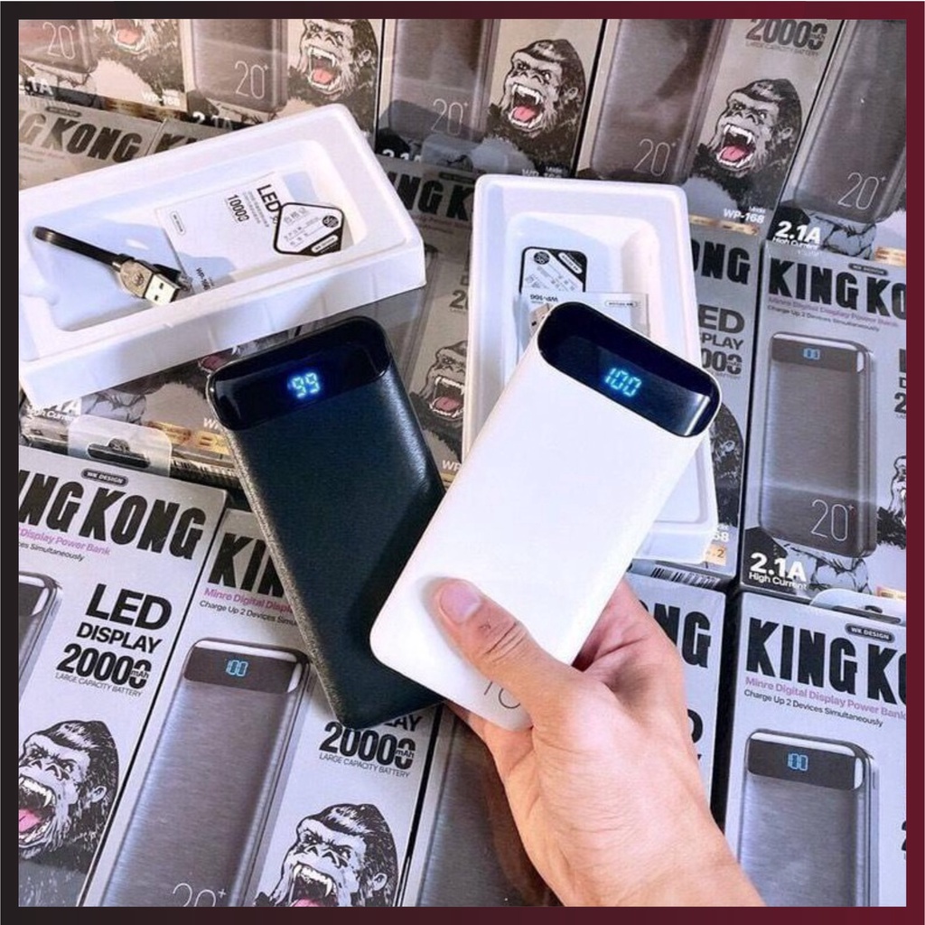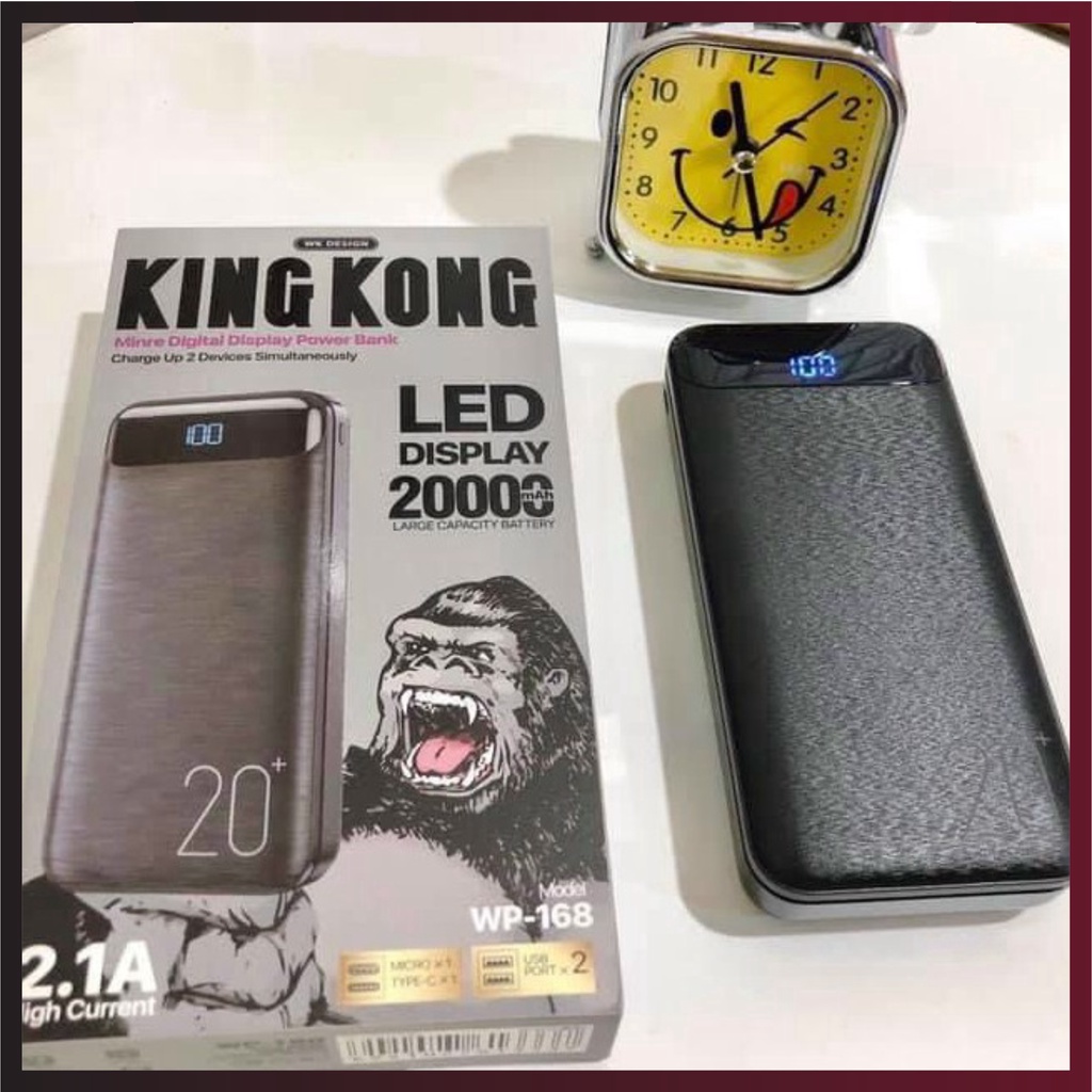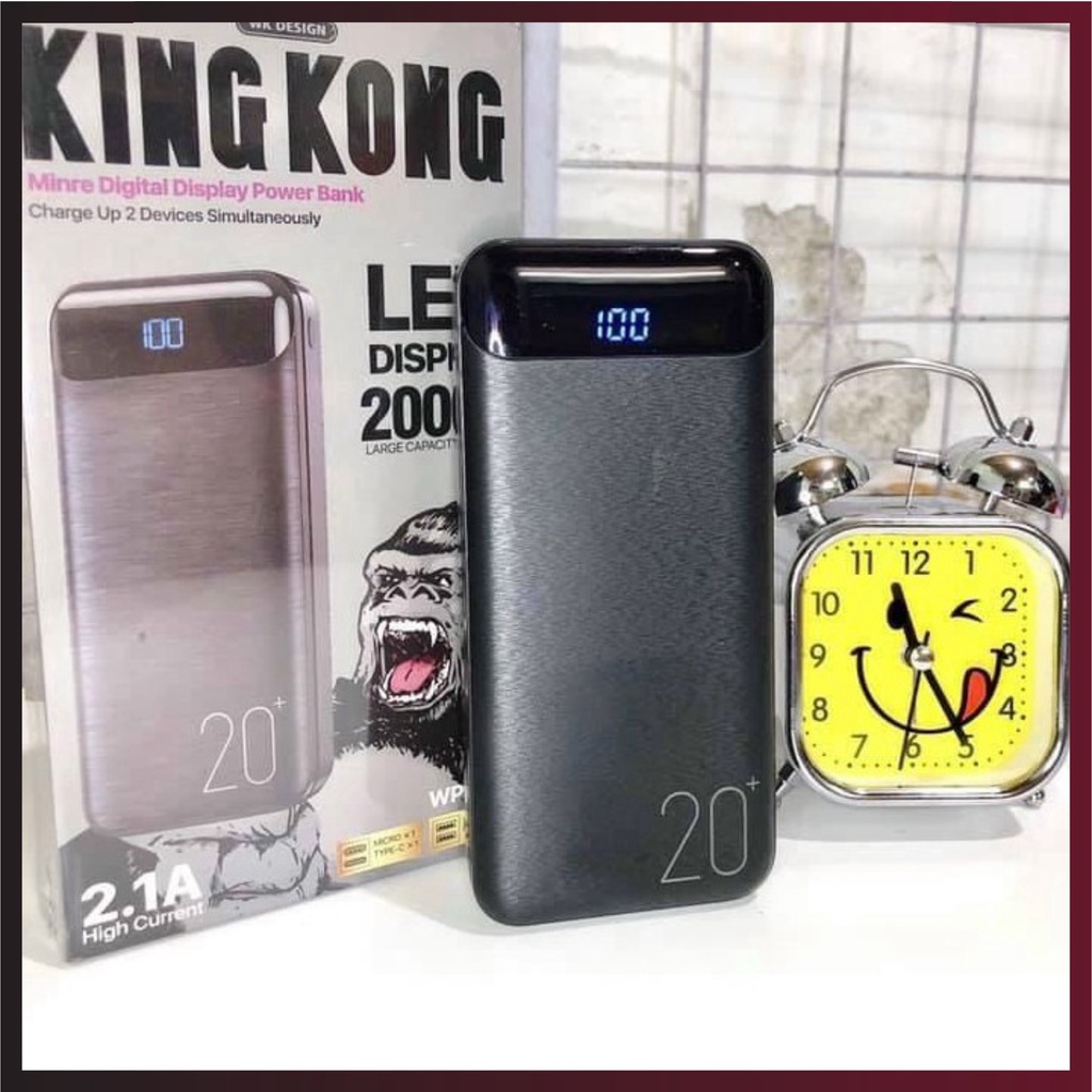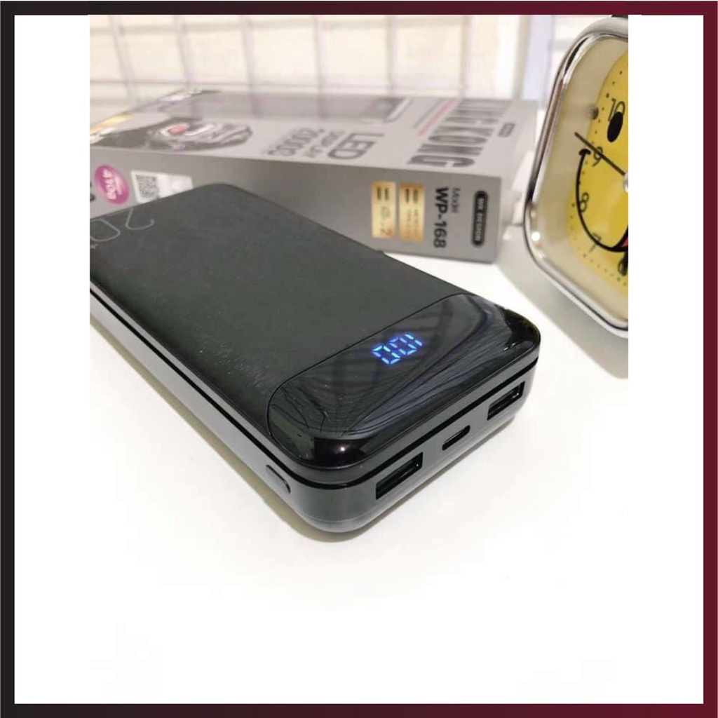 Cục xạc pin sạc dự phòng 20000Mah WK DESIGN WP-168, hỗ trợ sạc nhanh 2.1A có đèn led báo % pin bảo hành 6 tháng