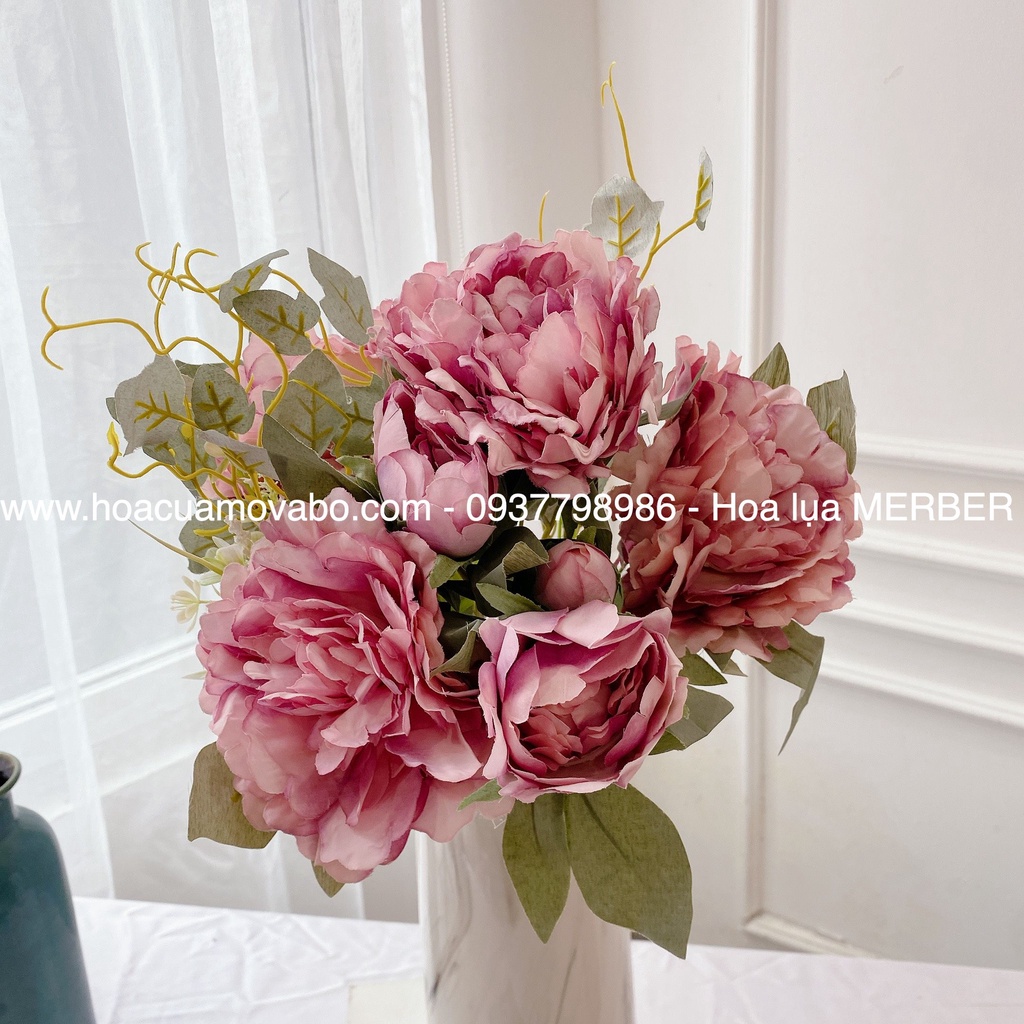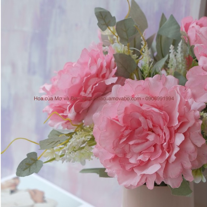 Bơ mới về siêu phẩm cụm mẫu đơn style Hàn Quốc 4 bông hoa to 15cm, 2 bông hé, 1 bông nụ và 5 điểm láCụm mẫu đơn nhà Bơ mới về bông to khủng 15cm mà giá lại rất ok nhé các bác ơi ^^