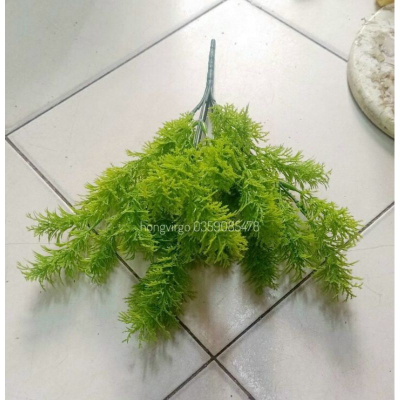 Cụm cỏ rong giả dài 25cm, gồm nhiều nhánh nhỏ, màu sắc xanh mướt giống thật đến 99%. Sẽ làm cho trang trí của bạn thêm phần sinh động hơn.#hoagia #cogia #lagia