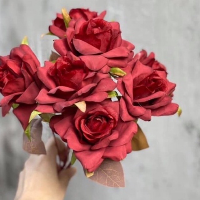 🍀 Cụm Hoa Hồng Giả 7 Bông được làm từ chất liệu vải lụa cao cấp kết hợp tông màu cực tây phù hợp decor tiệc, sự kiện , sinh nhật...- Một cụm dài 35 cm