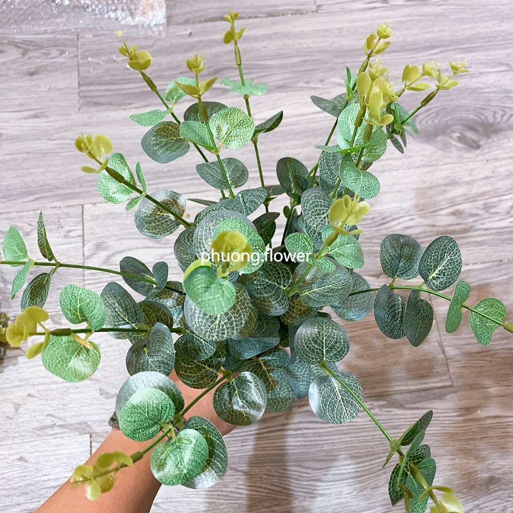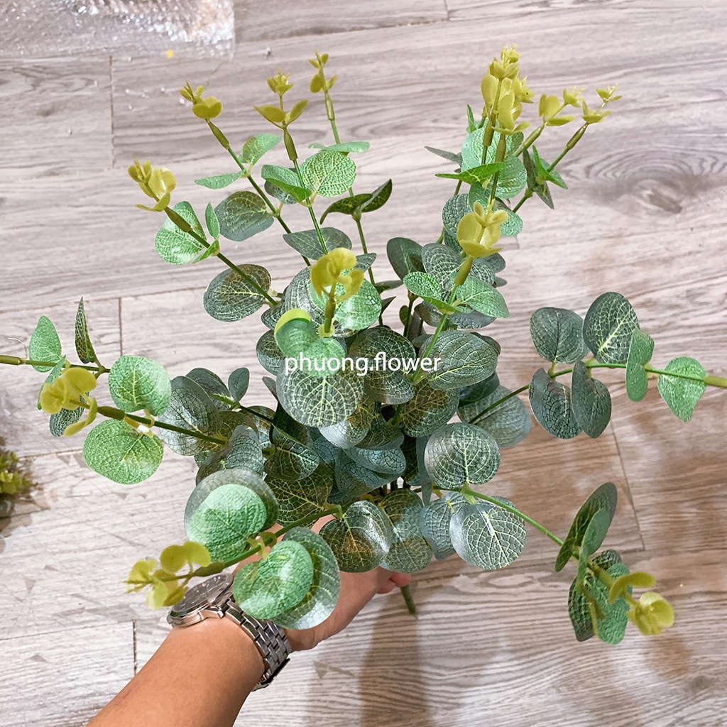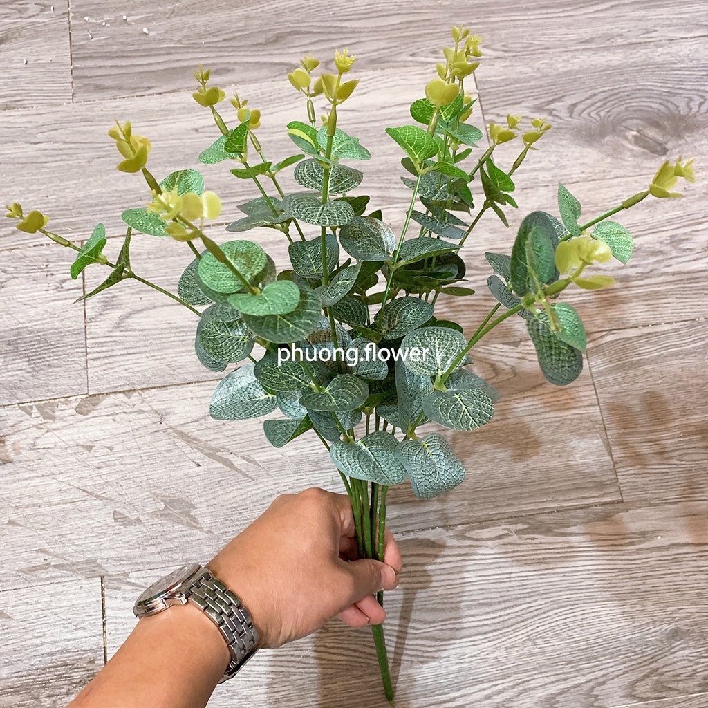 Giới thiệu Cụm lá táo lá bạch đàn giả 16 nhánh nhỏ cao 50cm lá giống thật làm phụ kiện cắm hoa trang trí