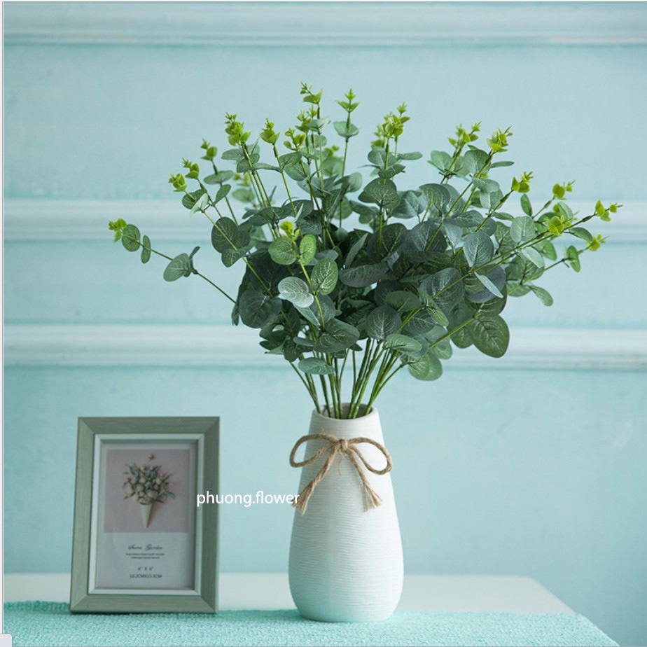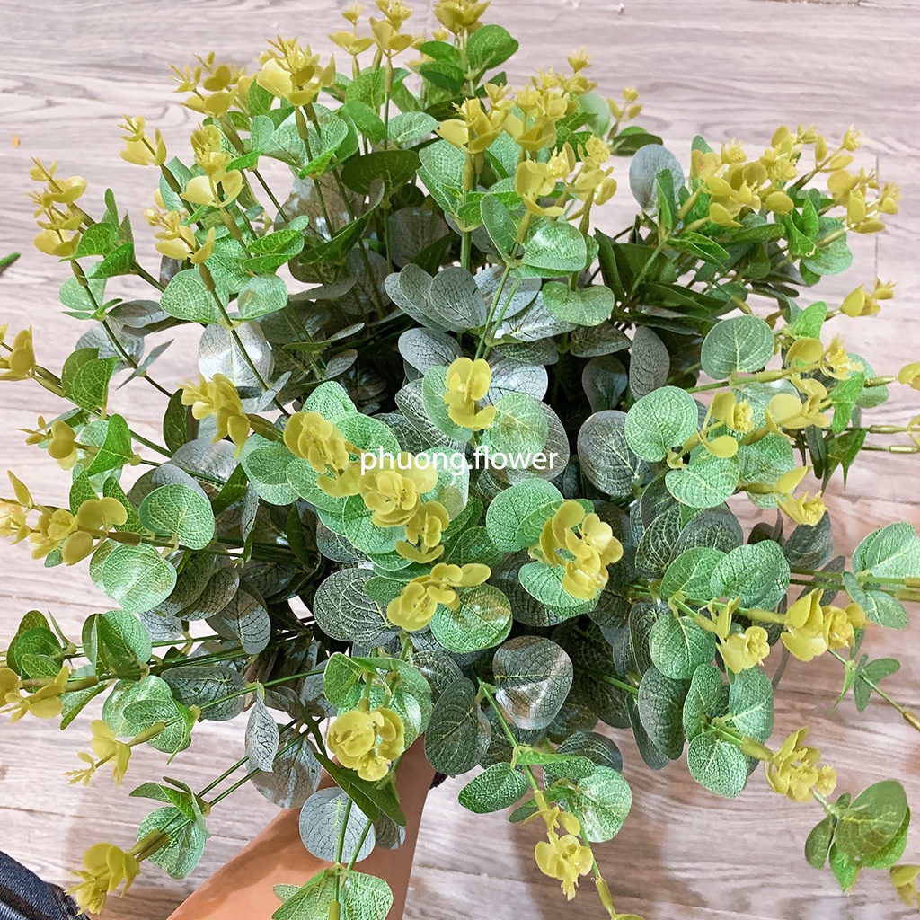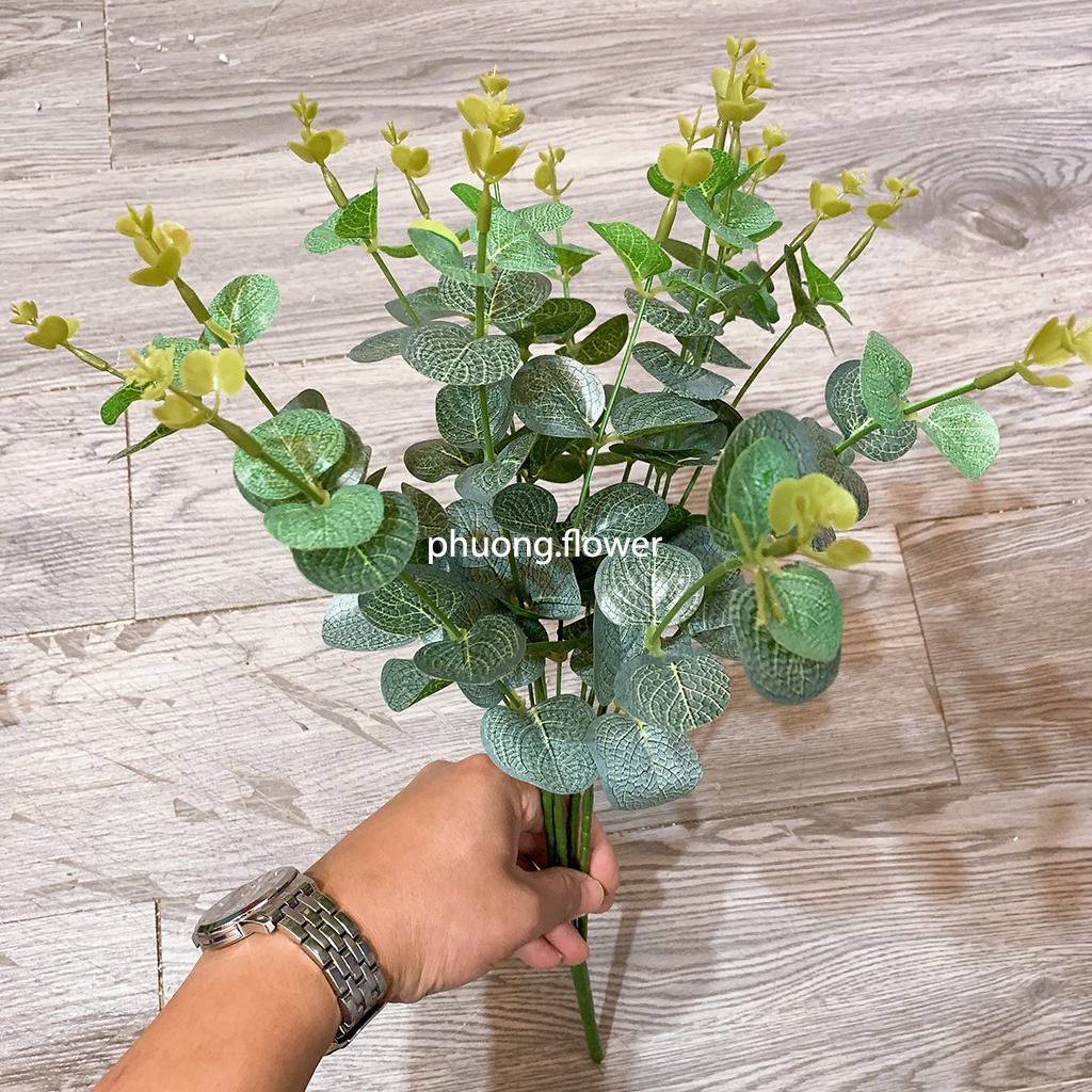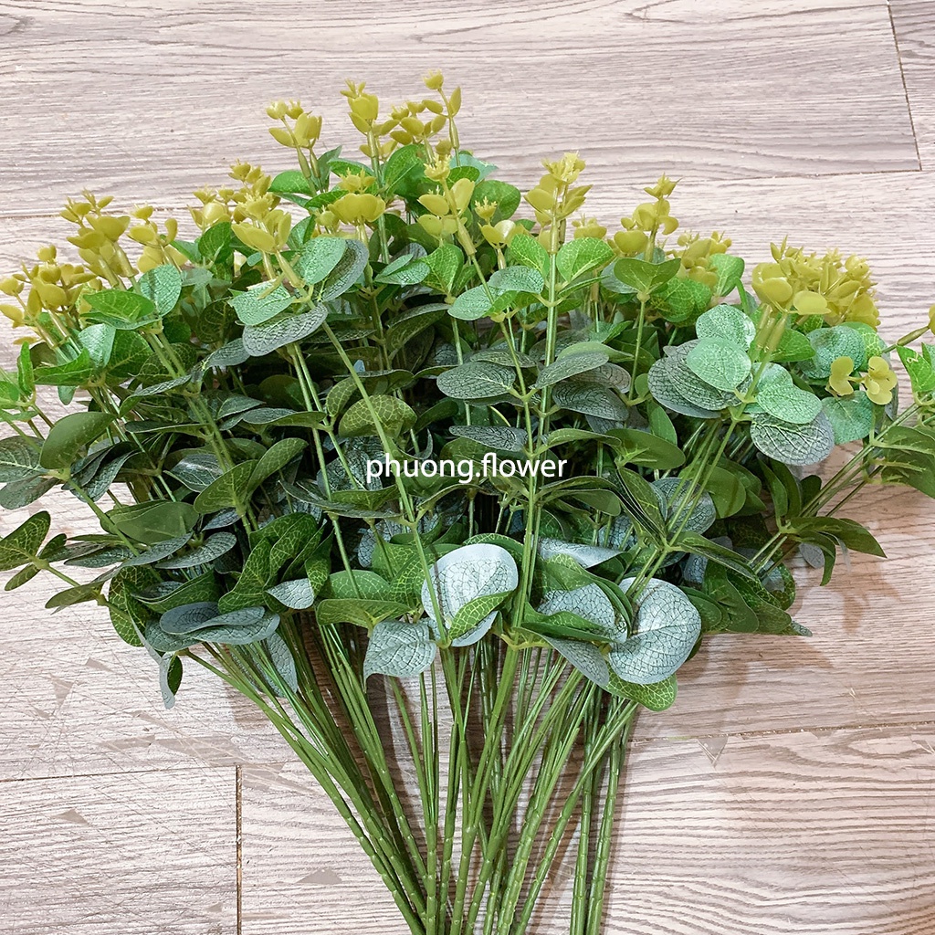 Giới thiệu Cụm lá táo lá bạch đàn giả 16 nhánh nhỏ cao 50cm lá giống thật làm phụ kiện cắm hoa trang trí
