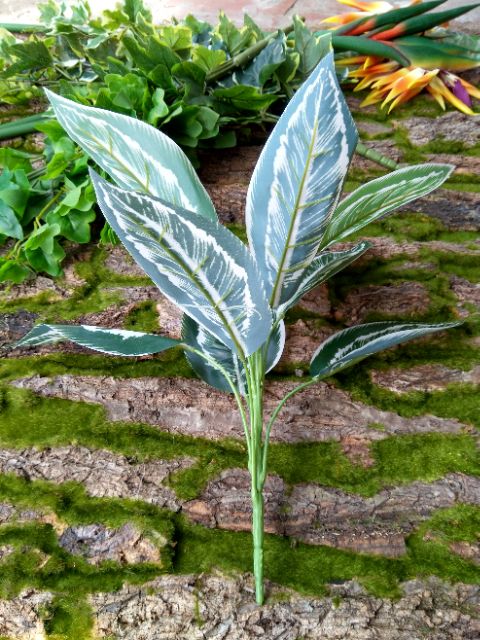 Cụm lá giả trang trí , làm tường cỏ, phụ kiện cắm hoa lụa, trang trí sự kiện...Cụm cao 35 cm, lá dài khoảng 15cm chất liệu vải ép, cành nhựa lõi thép dễ uốn.