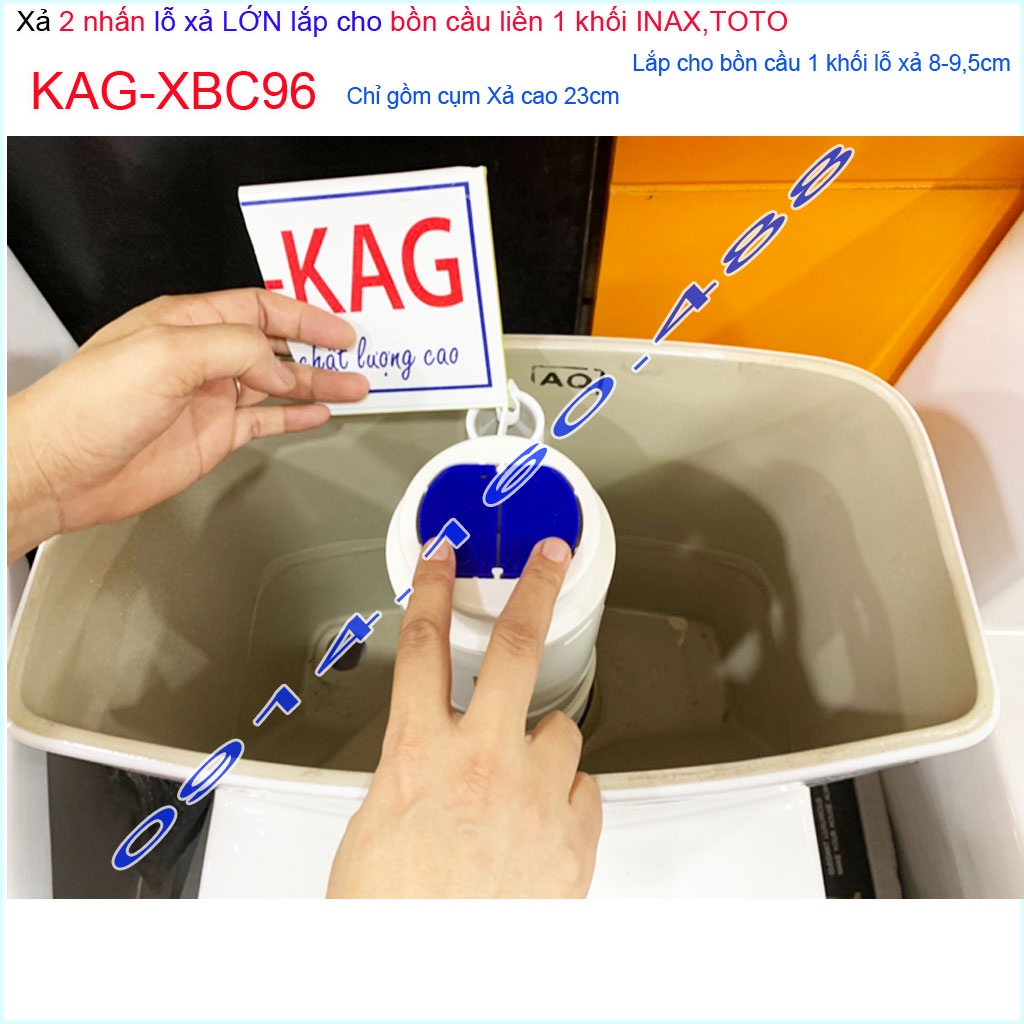 Cụm xả bồn cầu KAG-XBC96-cao 23cm cho Cầu Linax C909 cầu Toto C885, xả 2 nhấn cầu liền khối lỗ thoát sứ 8cm-9.5cm nhấn êm siêu bềnTHAY THẾ CHUYÊN CẦU 1 KHỐI LINAX VÀ TOTO VÀ CÁC CẦU CÓ LỖ XẢ LỚN ( LỖ XẢ SỨ TỪ 8CM-9.5CM)
