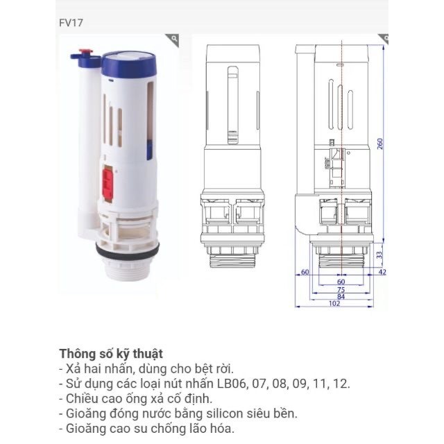 - Xả hai nhấn, dùng cho tất cả bồn cầu của các thương hiệu trong và ngoài nước.