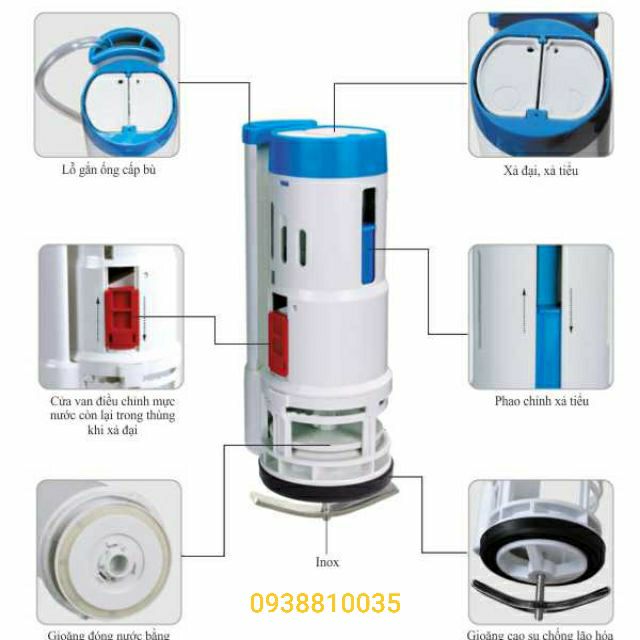CỤM XẢ #SMART LIỀN KHỐI 2 NHẤN HÙNG ANH- Dùng để thay thế cây xả nước cho két nước của bồn cầu liền khối (cầu 1 khối) có kết nước dính liền thân cầu.