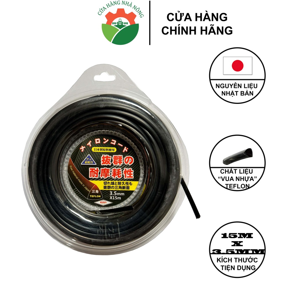 Nhà cửa & Đời sống > Làm vườn > Máy cắt cỏ, dụng cụ cắt cỏ || CƯỚC CẮT CỎ KAVI -TEFLON NHẬT BẢN 15M X 3.5MM CAO CẤPCòn hàng