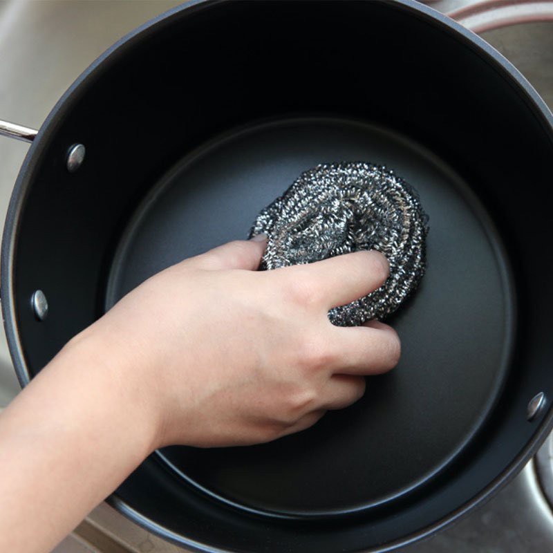 - Được làm từ những sợi thép nhỏ, mềm, giúp xóa nhanh vết bẩn, vệt đen trên dụng cụ nhà bếp bằng kim loại: nồi gang, sắt, inox, bếp điện…