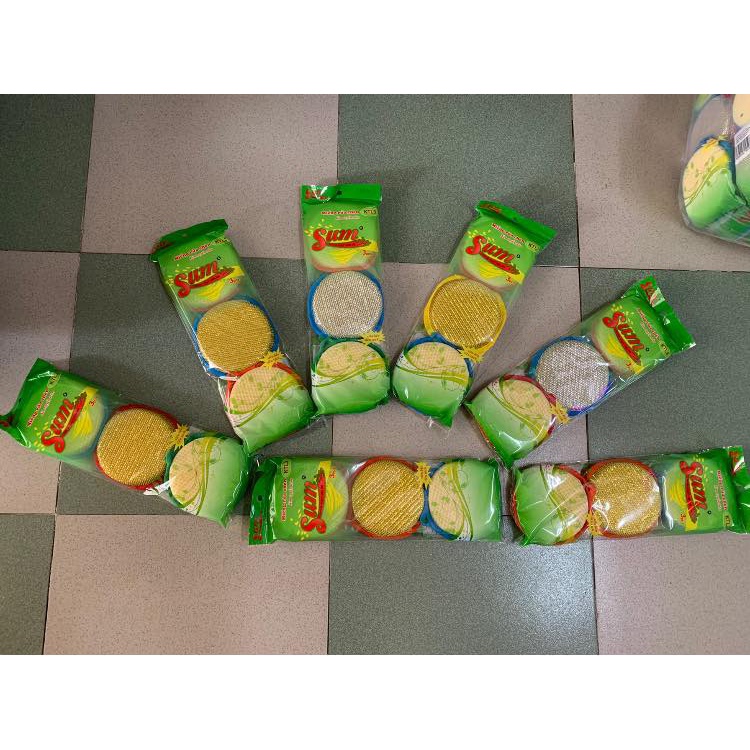 Nhà cửa & Đời sống > Dụng cụ chăm sóc nhà cửa > Miếng bọt biển, miếng chà vệ sinh || cước chùi xoong kim tuyến tròn sum 1 bộ 3 miếng ( 1 bịch )Còn hàng