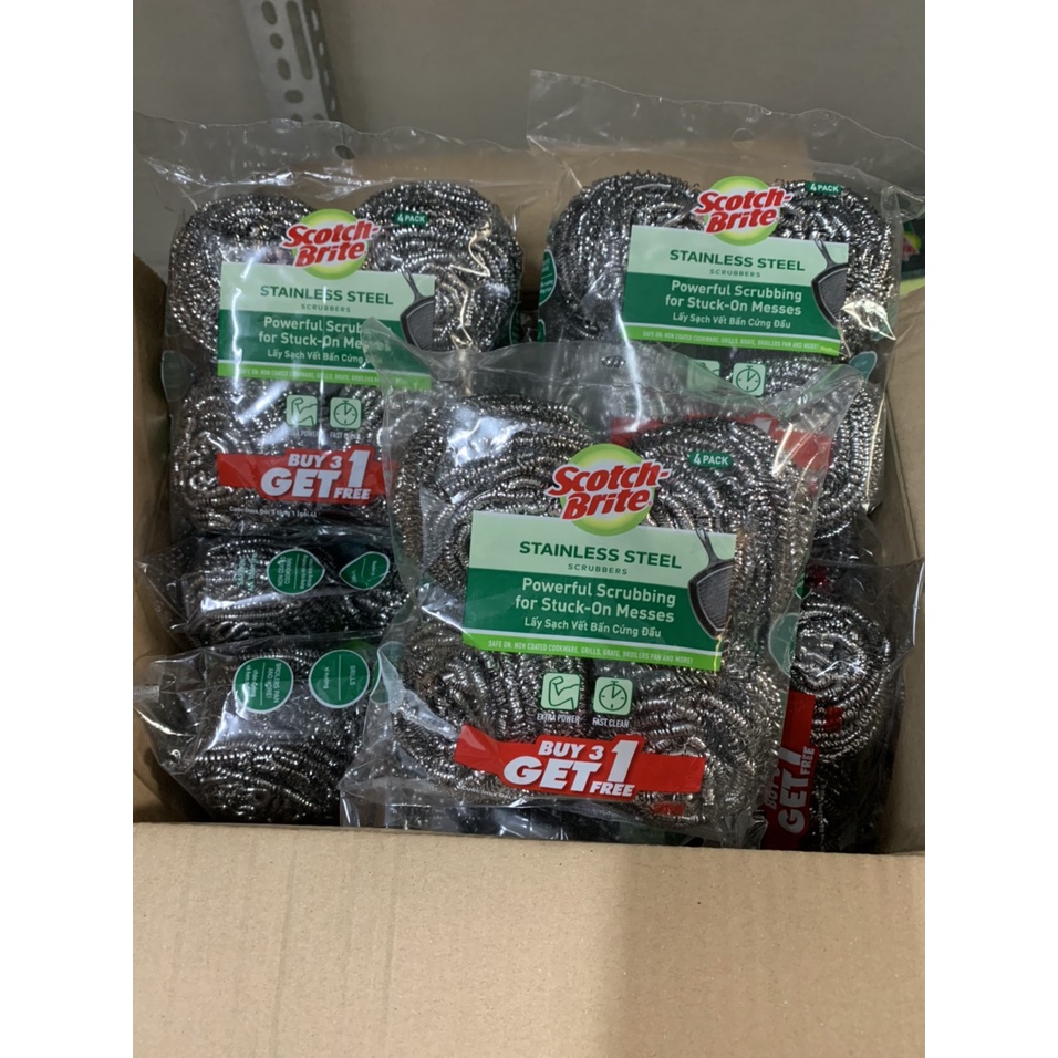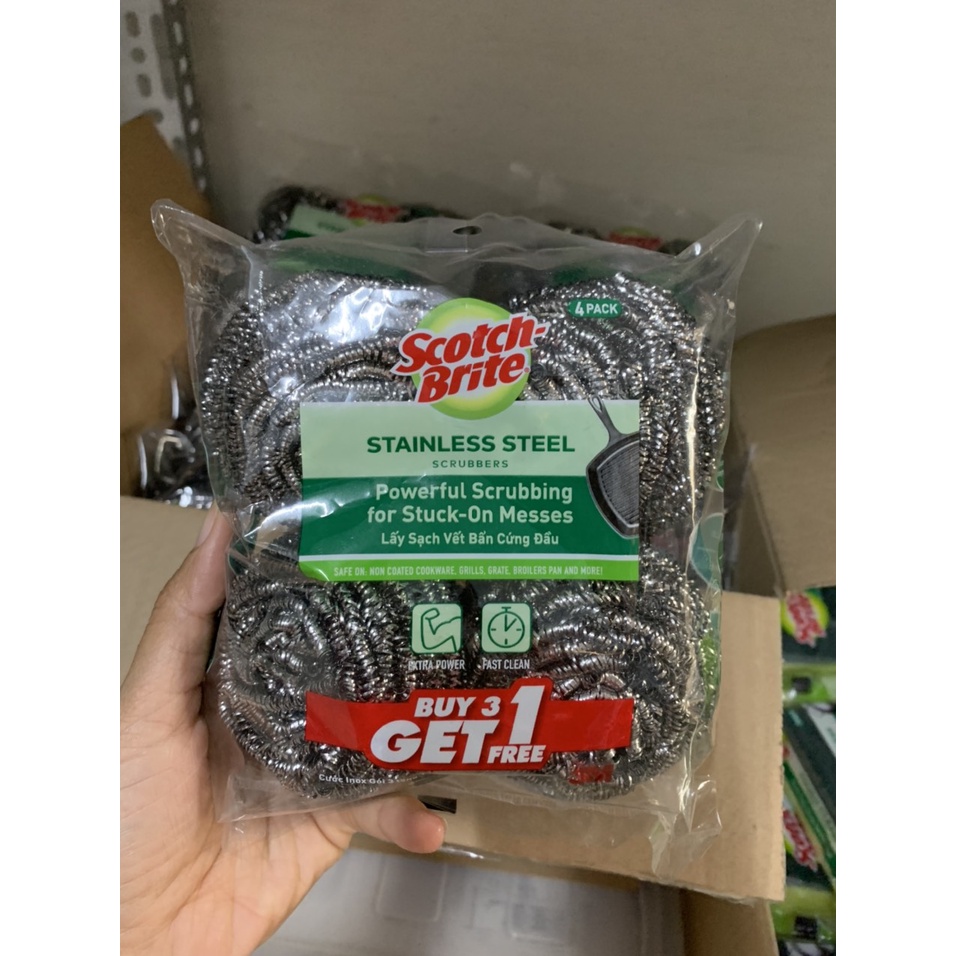 Cước Cọ Rửa Inox Siêu Sạch Gói 3 + 1 3M XA010909183 | Dành Cho Nồi Chảo Nhôm Inox 30g – Hàng Chính Hãng | Scotch-Brite