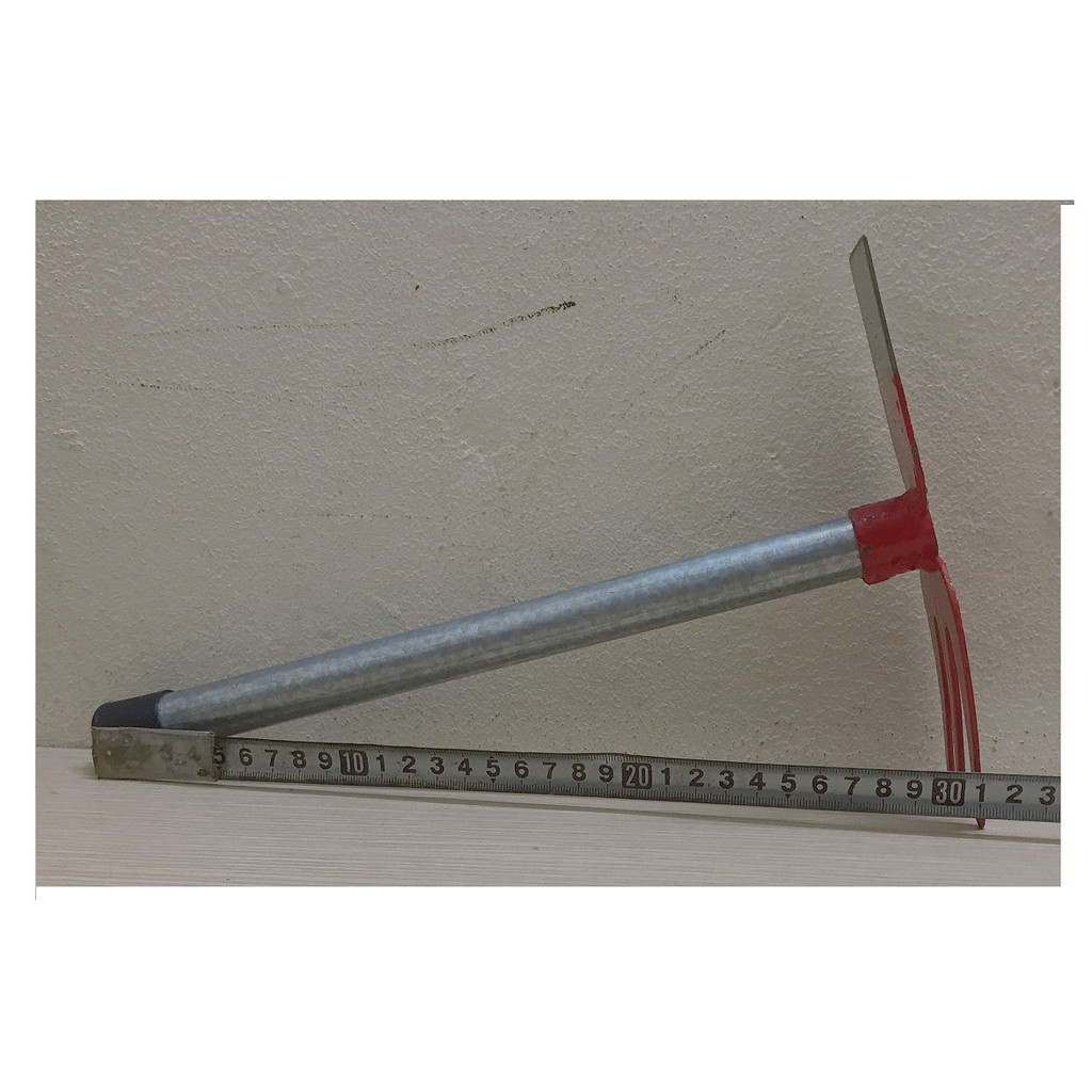 Dụng cụ làm vườn 2 trong 1 gồm Cào, Cuốc cầm tay, cán sắt, chuôi nhựa, lưỡi sắt sơn đỏ, chiều dài 31cm