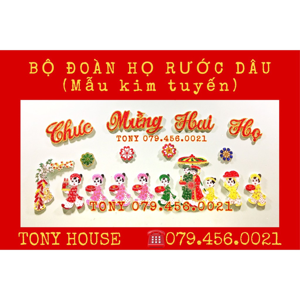 - Hình Bộ đoàn họ rước dâu kim tuyến và chữ Chúc mừng hai họ
