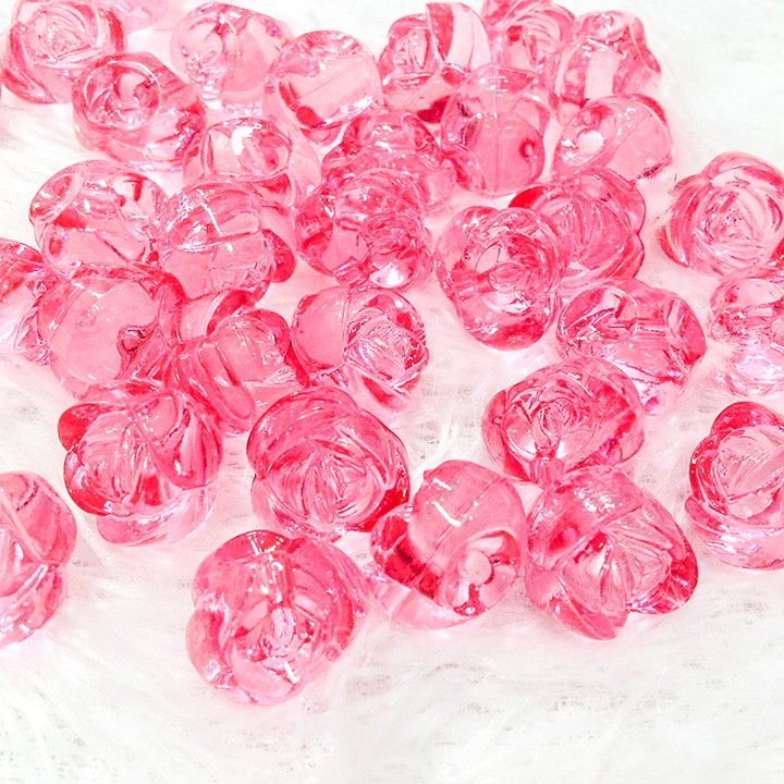 -Hạt nhựa 3D trong suốt hình hoa hồng dùng làm trang sức hoặc thủ công mỹ nghệ.-Giá: 3k / 1 hạt hoa hồng.
