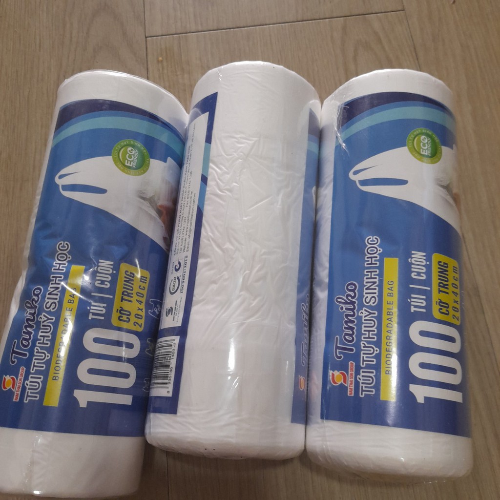 Nhà cửa & Đời sống > Dụng cụ chăm sóc nhà cửa > Túi nilon & túi rác || Cuộn 100 Túi Đựng Thực Phẩm Tự Hủy Sinh Học Tamiko Cỡ Trung 20x40 cm Có Quai XáchCòn hàng