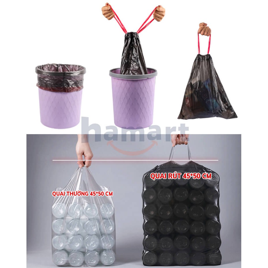 Cuộn 15 Túi Đựng Rác Có Quai Rút Hamart Túi Rác Tự Phân Huỷ 45x50 cm Sạch Tay Tiện Lợi