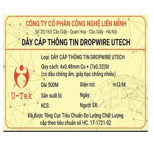 1 - Dây cáp thông tin DROPWIRE UTECH - Cuộn 500m