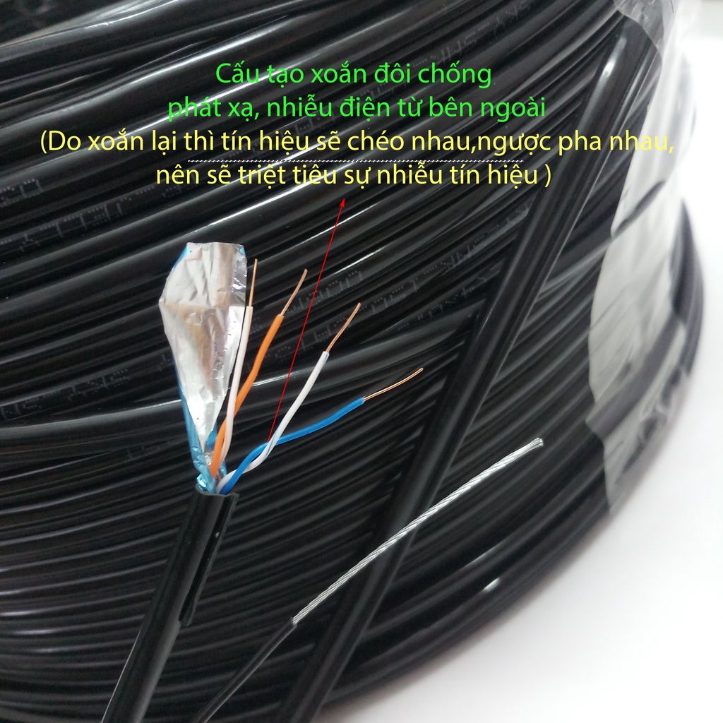 - Lớp bọc bạc quấn bao quanh chống nhiễu cho hệ thống mạng và đặc biệt là khi lắp hệ thống camera giám sát.