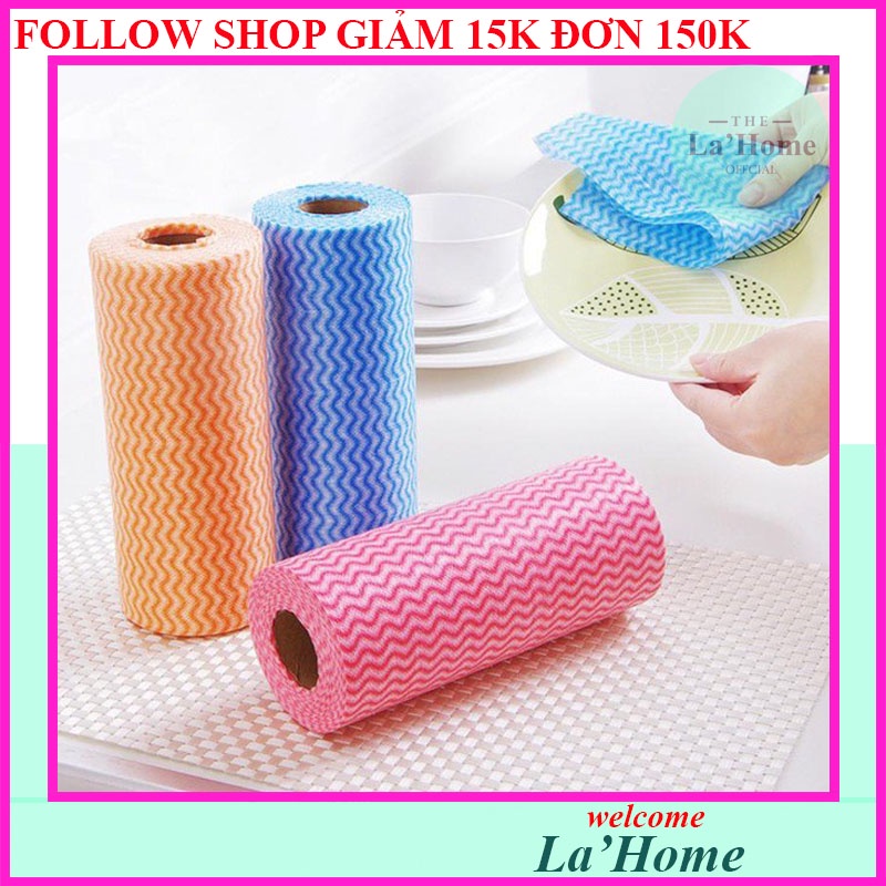 Cuộn 50 tờ giấy lau bếp đa năng La'Home, khăn giấy vải không dệt hút thấm tốt tiện dụng