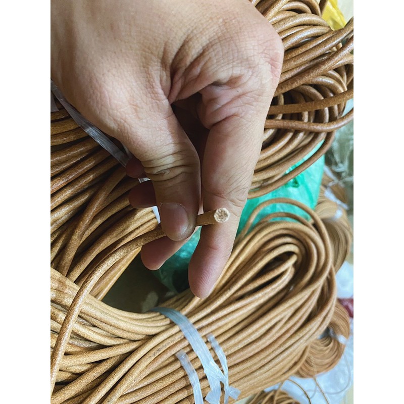 Dây da Veg tròn đợt này em về nhiều size lắm ạ. Dây da Veg tròn màu tự nhiên có thể tự nhuộm màu theo ý thích được ạ.Cuộn 90m dây các size 4-5-6-8mm.