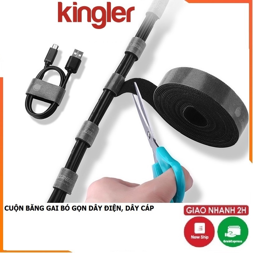 Cuộn Băng Gai Dính 2 Mặt - Buộc - Bó - Làm Gọn Dây Sạc, Tai Nghe, Dây Điện, Tái Sử Dụng, Đơn Giản. Kingler 5677