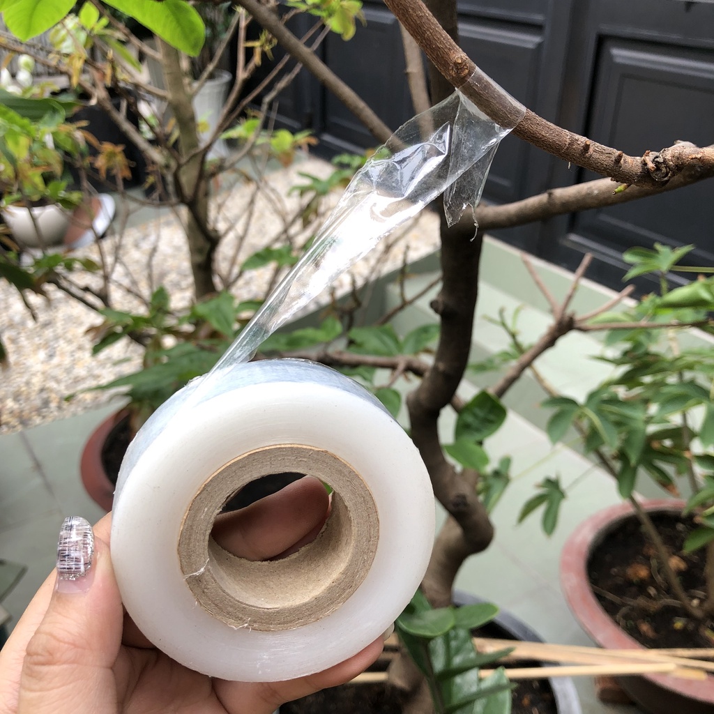 Băng ghép cây cuộn 2cm tự dính hoạt động theo nguyên lý tĩnh điện nên không cần phải buộc thắt nút. Băng quấn được làm từ nhựa PE nguyên sinh có khả năng tự hủy sau 2 năm, giúp bạn tiết kiệm được thời gian trong công việc tháo rỡ mối ghép.Khả năng tự dính: Là màng mỏng nhựa PE, trong khi quấn sẽ phát sinh lực ma sát giúp tạo ra lực hút tĩnh điện, khi quấn xong mắt ghép, chỉ cần miết nhẹ là mạng nhựa mỏng sẽ tự bám vào nhau nhờ lực hút tĩnh điện. Lực hút này đủ lớn để nước không thẩm thấu vào giữa các bề mặt của màng, ta cũng không cần phải thắt nút mối ghép do nguyên lý tự dính của băng ghép.