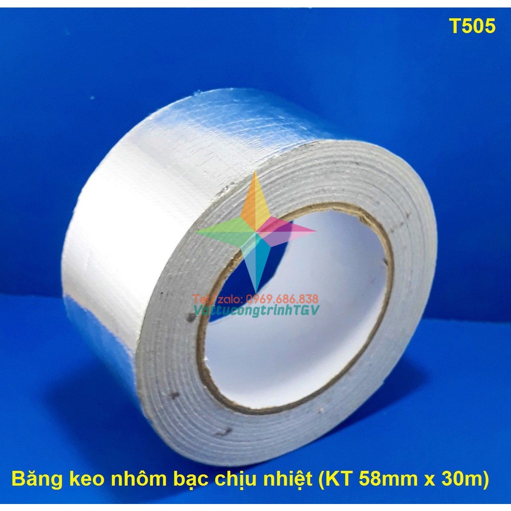 Cuộn băng keo nhôm bạc chịu nhiệt KT 58mm x 30m x 100mic
