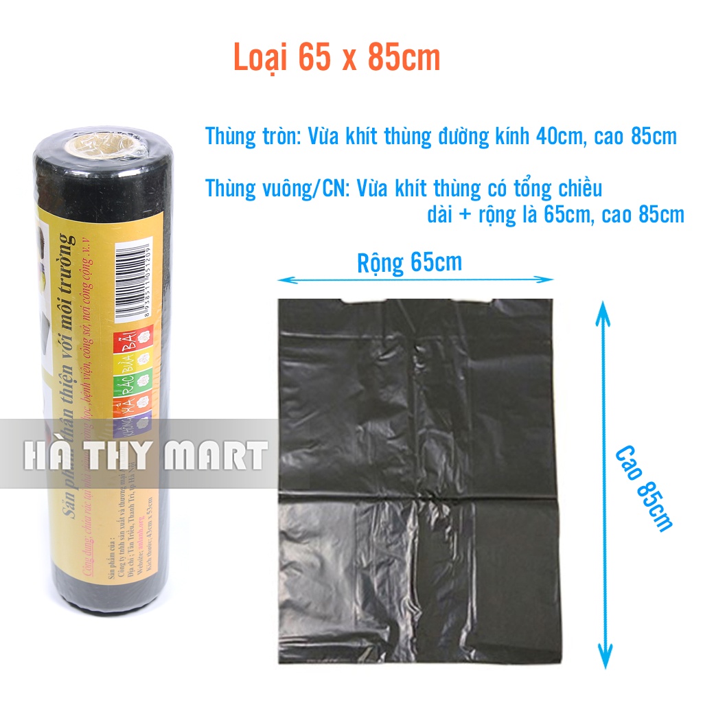 + Cuộn 65 x 85cm x 1kg (~30 túi/cuộn - loại to nhất thường sử dụng cho thùng rác công ty, bệnh viện, thùng sơn)