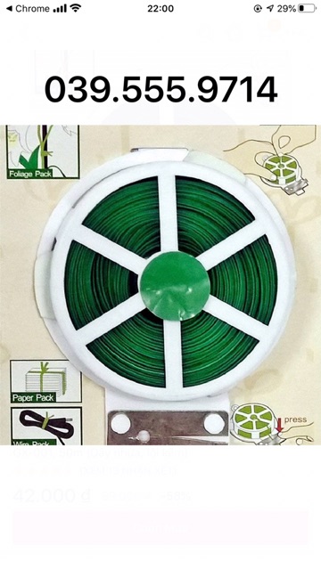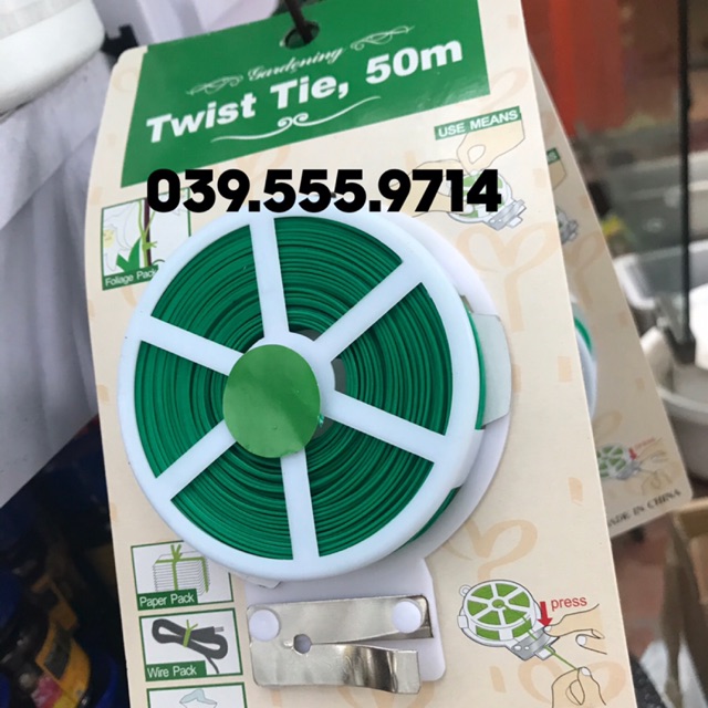 Cuộn dây buộc cây, buộc đồ vật loại nhựa màu xanh bên trong là lõi kẽm. Dây mềm nhưng rất dai, buộc chắc chắn.