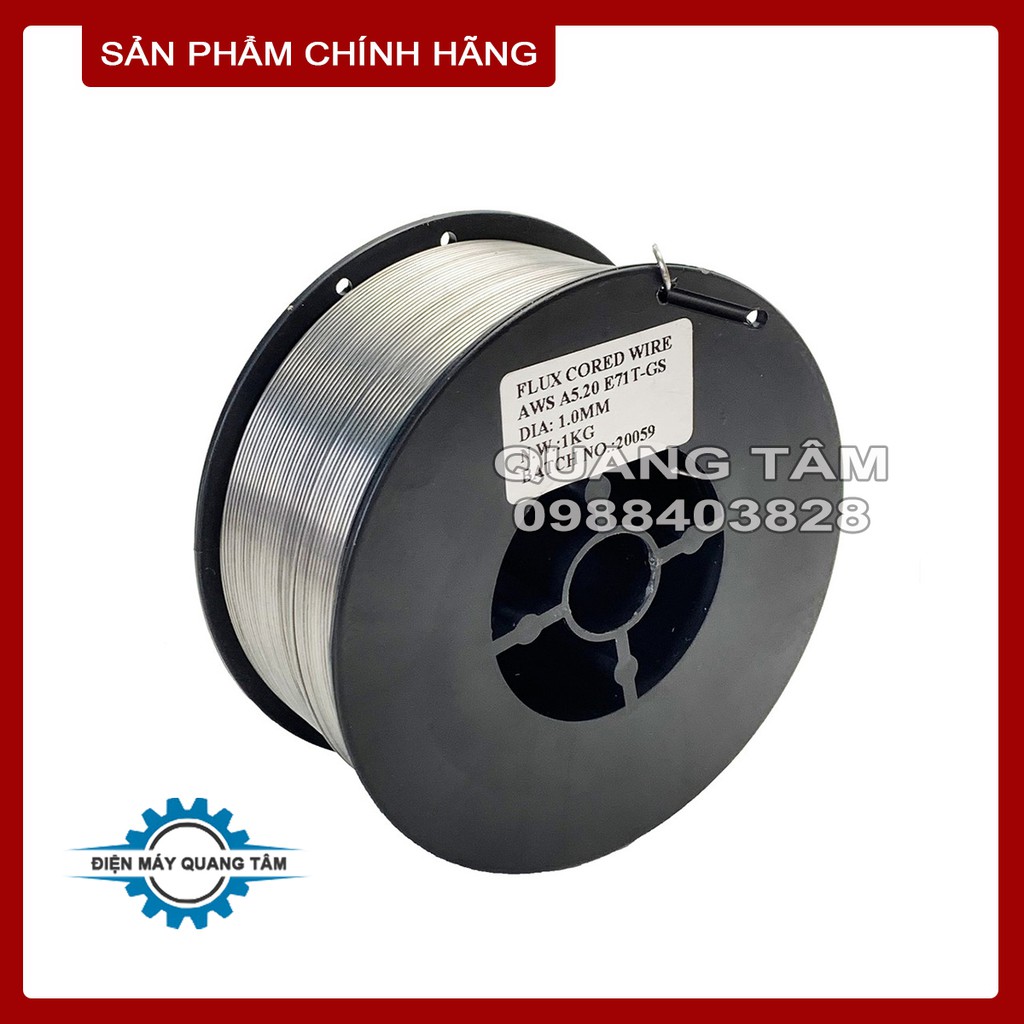 - Cuộn dây hàn Mig lõi thuốc 1kg đường kính dây 0.8mm, dây có sẵn lõi thuốc nên khi hàn không cần dùng khí Co2 mà vẫn cho mối hàn đẹp, ít xỉ