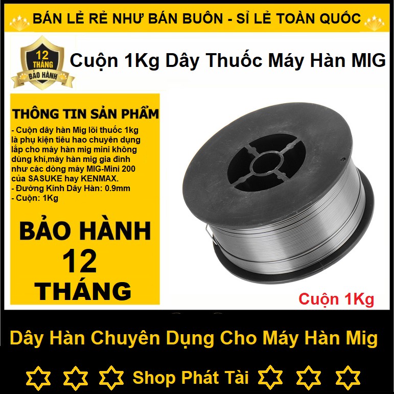 Dây hàn MIG lõi thuốc loại 1kg dùng cho máy hàn MIG không khí giúp nâng cao tinh năngluyện kim của quá trình hàn và cơ tính của lớp đap thông qua các nguyên tố hợp kim chứa trong thuốc hàn.