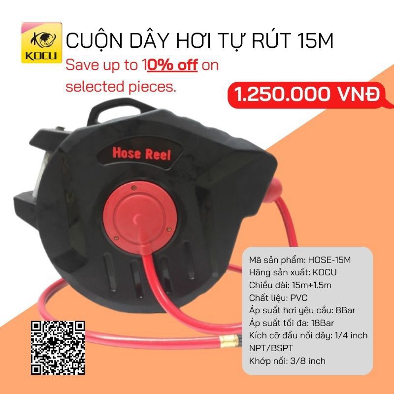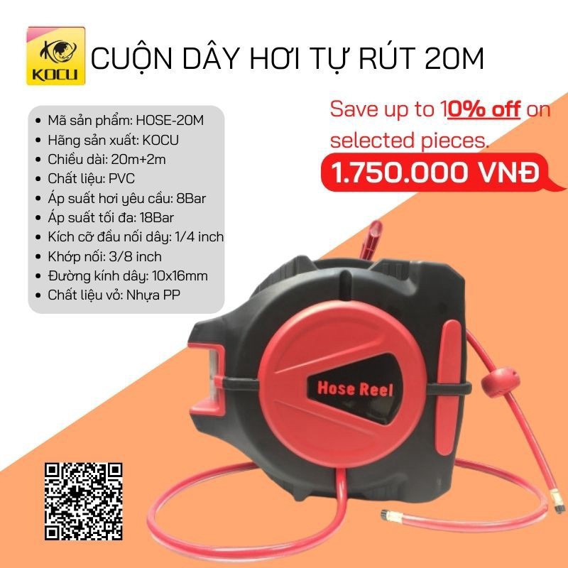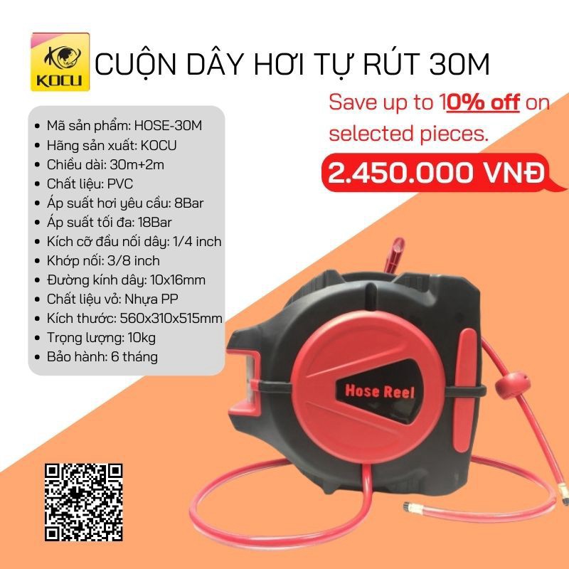 Kocu Việt Nam hân hạnh là một trong những nhà cung cấp dòng sản phẩm Cuộn dây hơi tự rút chính hãng tại Việt Nam. Sản phẩm đảm bảo 100% hàng nhập khẩu tại nhà máy, uy tín và chất lượng, chắc chắn sẽ khiến bạn hài lòng.