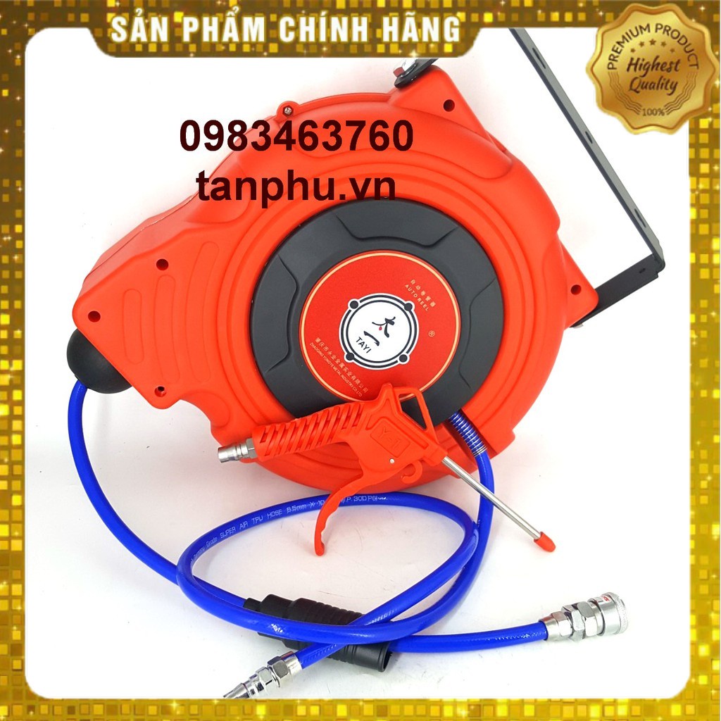 CUỘN DÂY HƠI TỰ RÚT TAYI PHI ỐNG 6.5* 10MM DÀI 10M TẶNG KÈM SÚNG XỊT BỤI CAO CẤP