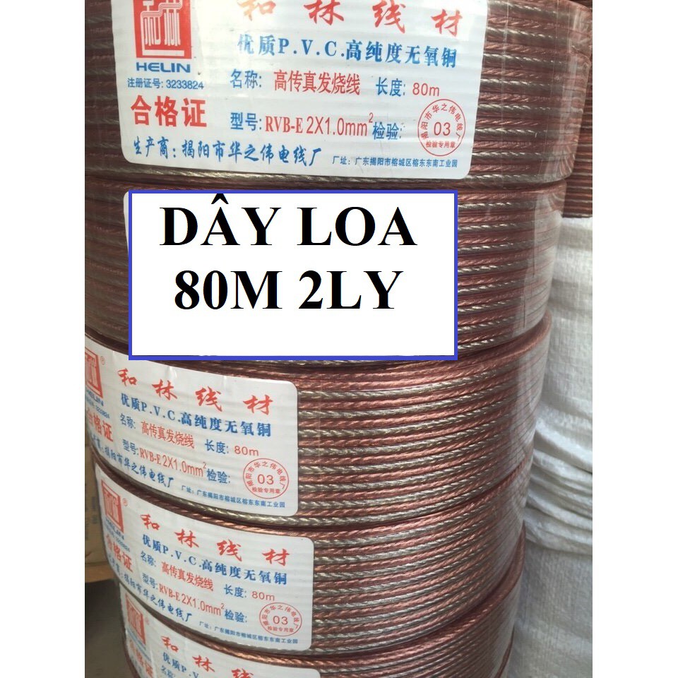 DÂY LOA 2 LY CUỘN 80 mSản phẩm dây loa 2ly cuộn 80 m chuyên dùng cho các thiết bị âm thanh , được kết nối từ amly đến loa mang đến âm thanh tuyệt hảo