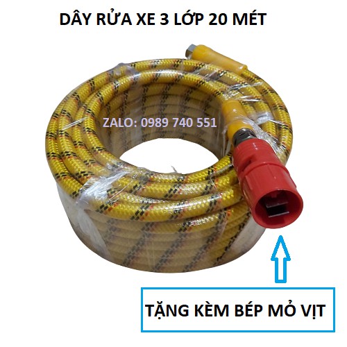 Nhà cửa & Đời sống > Dụng cụ & Thiết bị tiện ích > Máy bơm nước & phụ kiện || Cuộn dây máy rửa xe 20m chịu áp lực cao Đài Loan - loại 3 lớp kèm bép điều chỉnh mỏ vịtCòn hàng