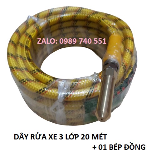 Nhà cửa & Đời sống > Dụng cụ & Thiết bị tiện ích > Máy bơm nước & phụ kiện || Cuộn dây máy rửa xe 20m chịu áp lực cao Đài Loan - loại 3 lớp tặng bép đồngCòn hàng