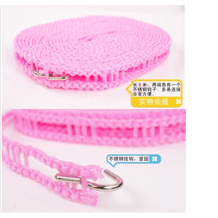 – Chất liệu nhựa mềm bền chắc, dây phơi cực kỳ bền chắc và dẻo dai, có thể chịu được mọi loại thời tiết, không thấm nước, không dẫn điện, rất an toàn và bền.– Chiếc dây phơi cố định mắc áo giúp trang phục không bị gió thổi bay hoặc dồn lại với nhau.