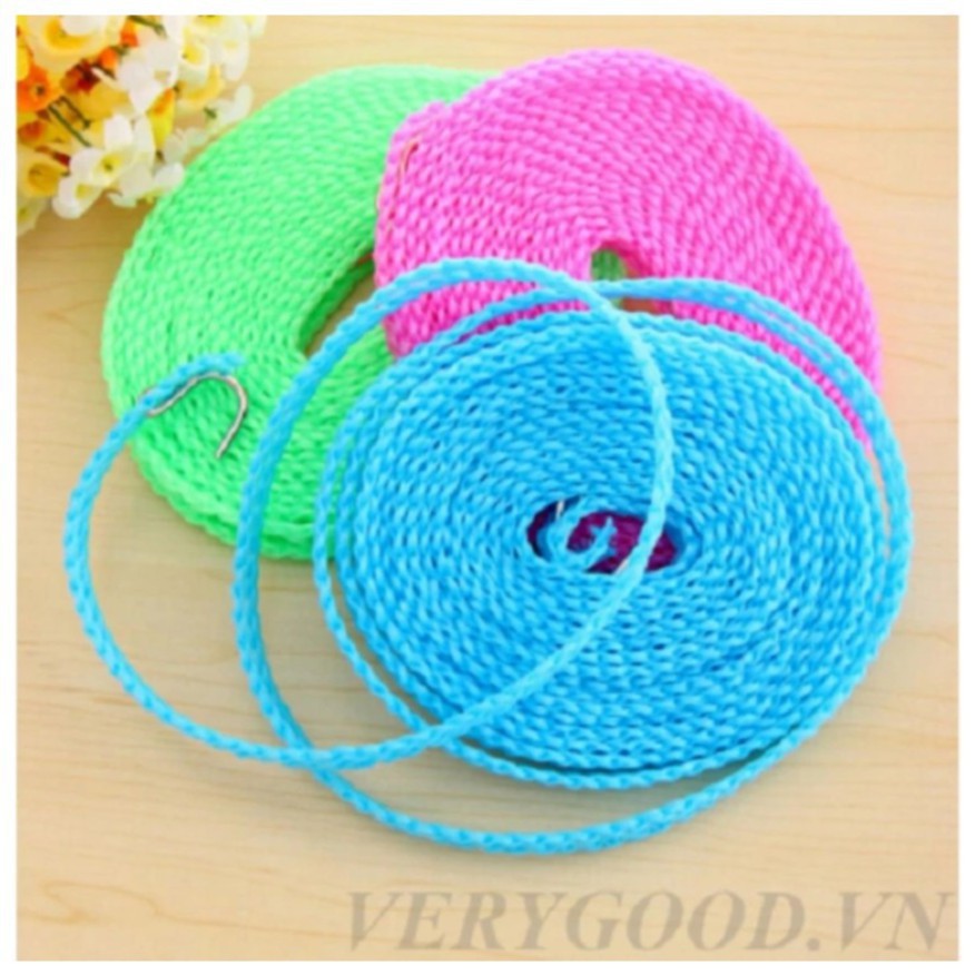 Cuộn dây phơi quần áo đa năng thông minh giúp cố định quần áo dài 5m:- Dây phơi quần áo thông minh giúp cố định các móc quần áo khi phơi tránh bị gió thổi dồn gây ẩm ướt và lâu khô.