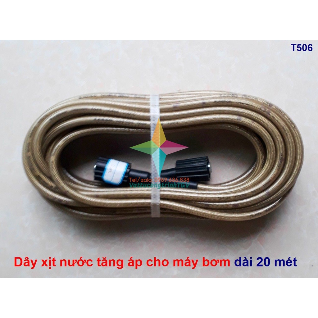 Nhà cửa & Đời sống > Dụng cụ & Thiết bị tiện ích > Máy bơm nước & phụ kiện || Cuộn dây xịt nước tăng áp 3 lớp dài 20m cho máy bơm, rửa xeCòn hàng