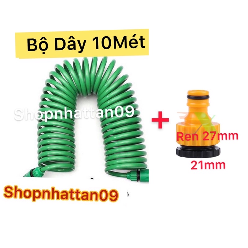 Cuộn Dây xịt nước tưới cây đa năng 10 mét - dây tưới dạng lò xo co dãn + ren 2lớp