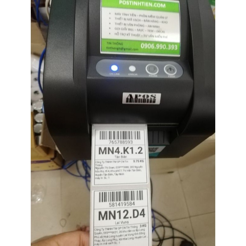 - Loại giấy: giấy in nhiệt có sẵn keo dán