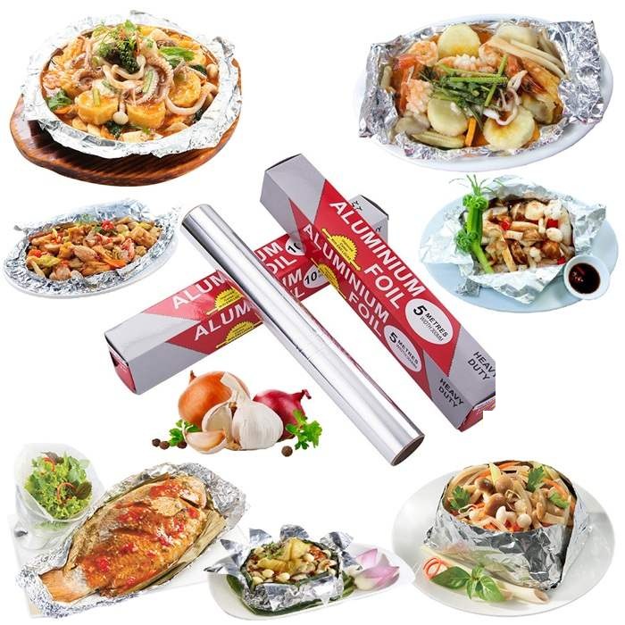 - Giấy bạc được phủ lên trên khay/khuôn nướng, giúp giữ hơi nước bên trong khay thức ăn, không bị bay hơi hay mất mùi.