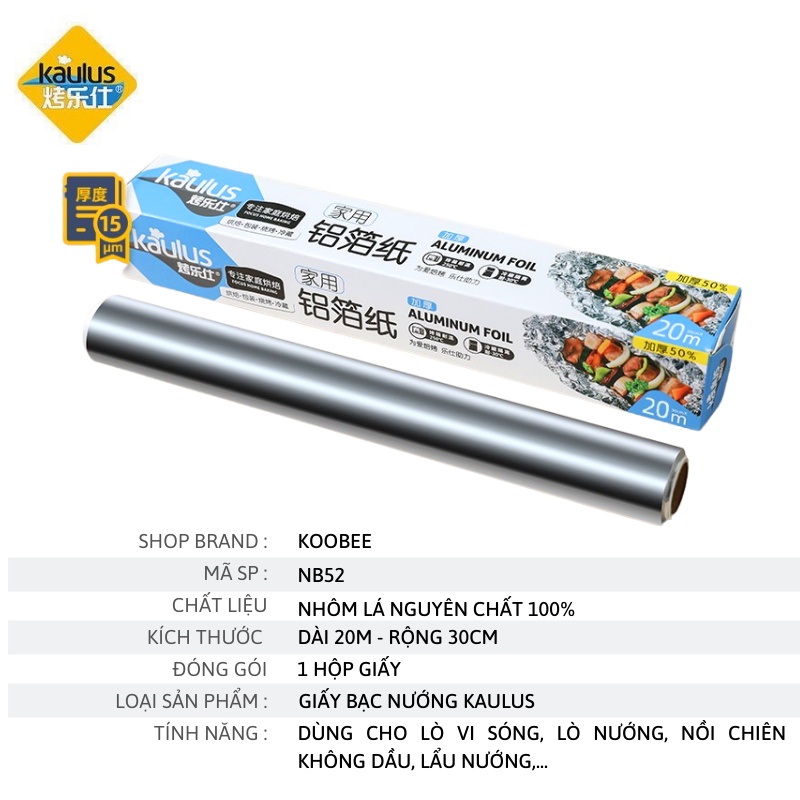 Cuộn giấy bạc nướng nhôm 20 mét KAULUS bọc thực phẩm dùng cho nồi chiên không dầu, lò nướng (NB52)