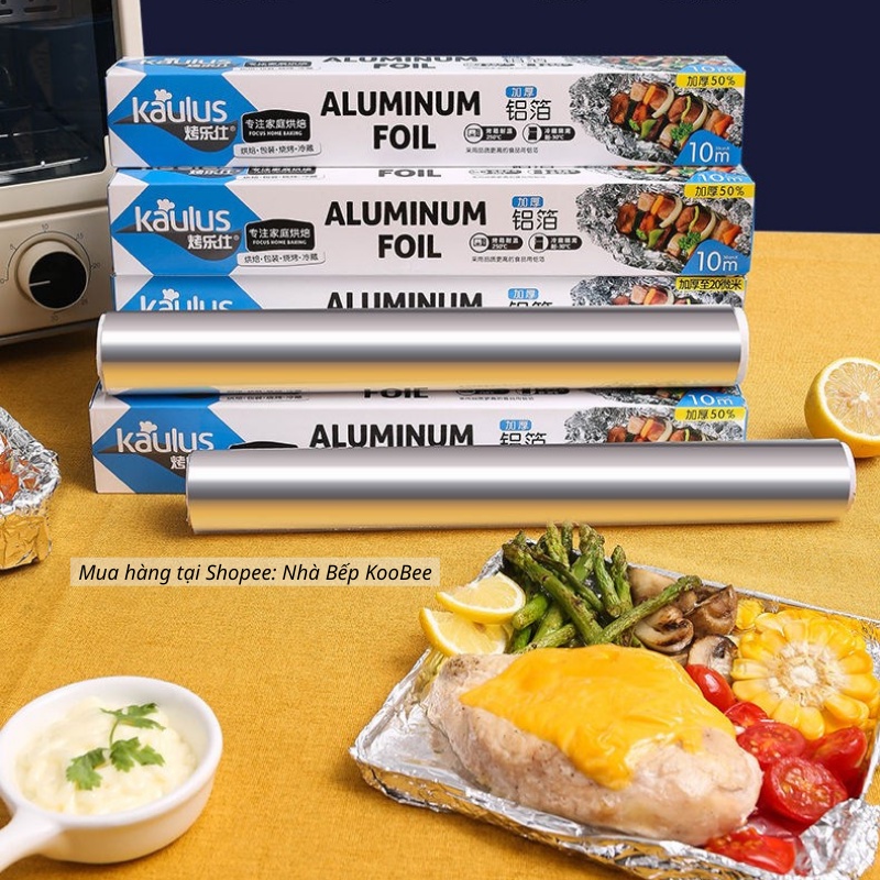 🔰TÊN SẢN PHẨM:Cuộn giấy bạc nướng, giấy nhôm 10 mét KAULUS - Giấy bạc bọc thực phẩm dùng cho nồi chiên không dầu, lò nướng (NB52)