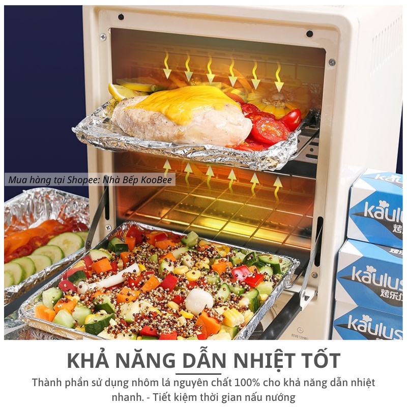- KHẢ NĂNG DẪN NHIỆT TỐT: Giấy nhôm KAULUS thành phần sử dụng nhôm lá nguyên chất 100% cho khả năng dẫn nhiệt nhanh. - Tiết kiệm thời gian nấu nướng