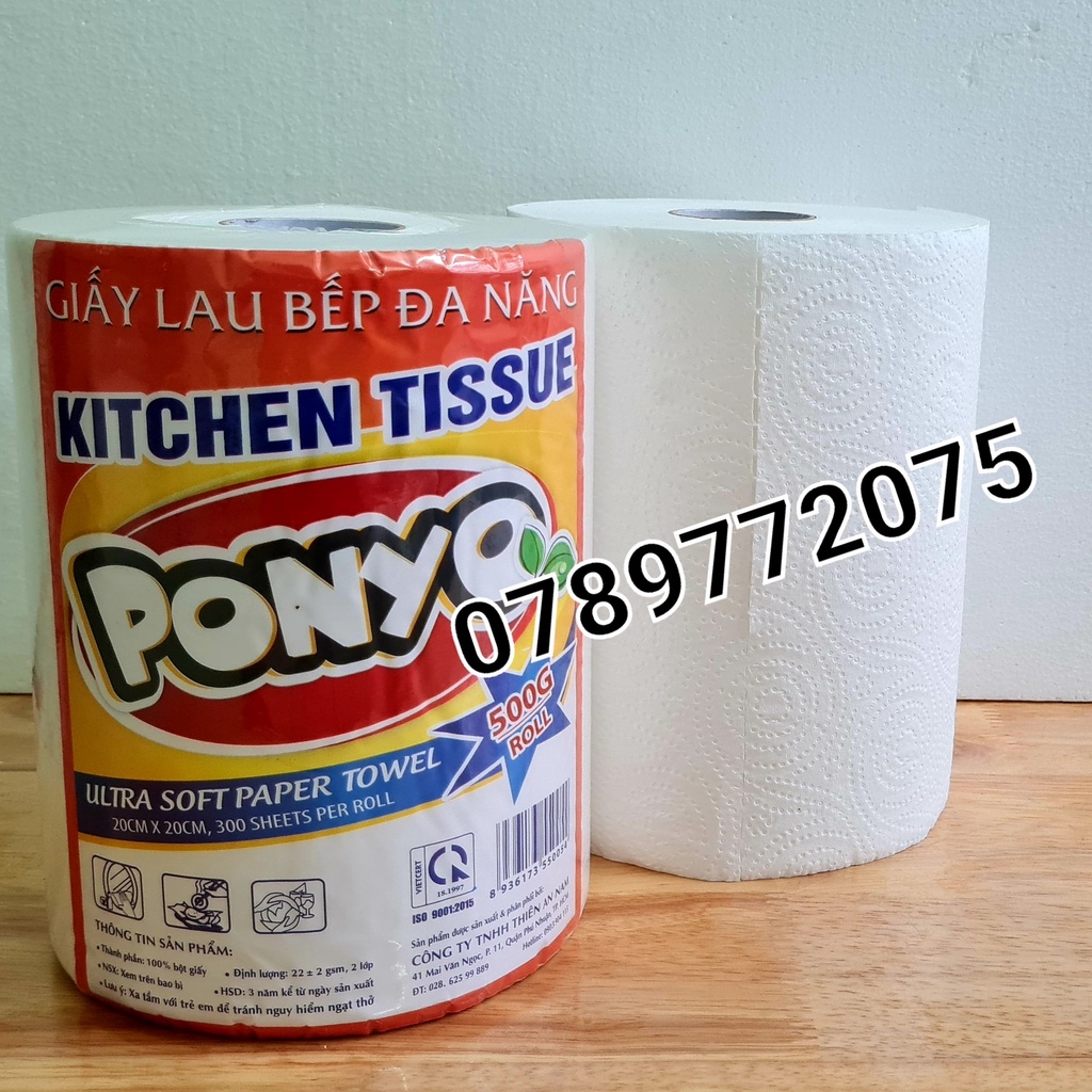 CUỘN GIẤY LAU BẾP ĐA NĂNG 2 LỚP PONYO 300 TỜ - 500G