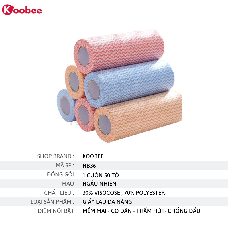 🔰TÊN SẢN PHẨM:Cuộn giấy lau bếp đa năng 50 tờ - Giấy lau đa năng dai bền siêu thấm tái sử dụng KooBee (NB36)