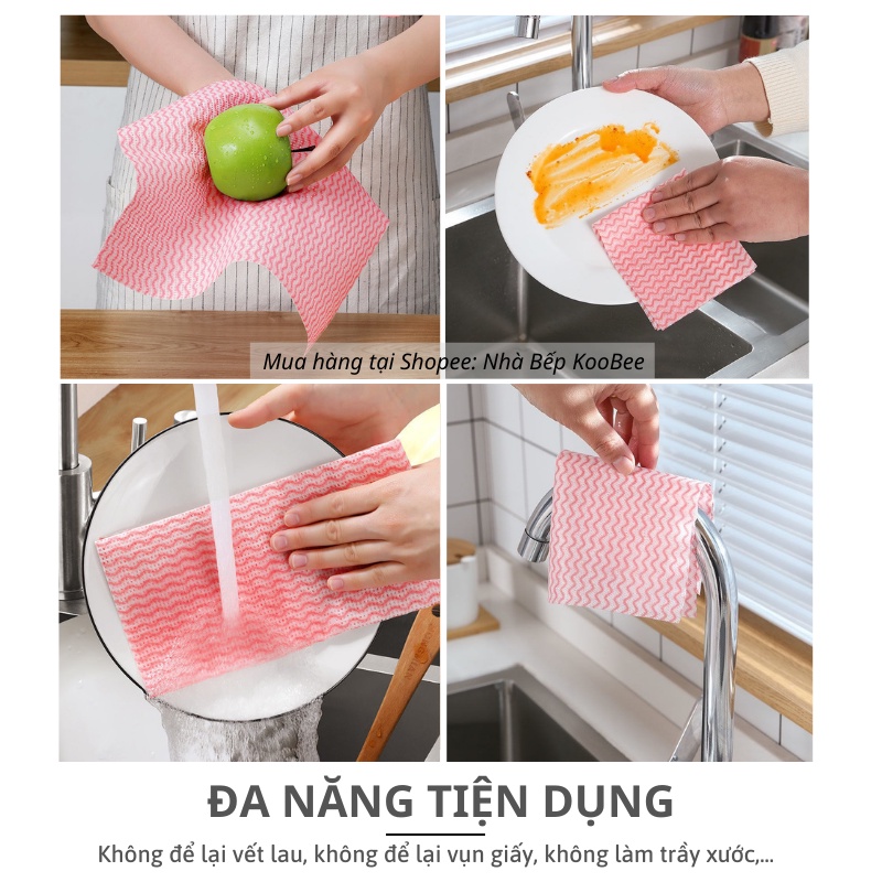 - Giấy lau bếp đa năng loại 1 bán tại Nhà Bếp KooBee được làm từ vải không đệt, chất liệu 30% Viscose, 70% Polyester, mềm mại, co giãn tốt, không bị nhăn và dễ thấm hút nước.