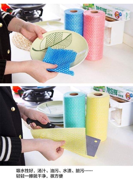 Cuộn giấy lau đa năng bằng vải, Thấm hút cực tốt Có thể lau dầu mỡ không cần dầu rửa, Có thể tái sử dụng nhiều lần, gặp nước ko rách...