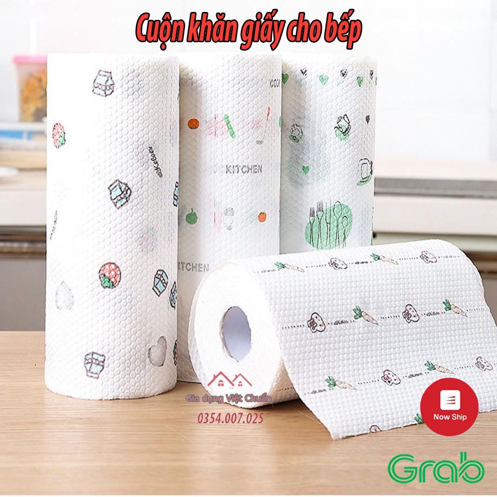Cuộn giấy lau đa năng nhà bếp dùng chén, bát, đĩa lau dầu mỡ có thể tái sử dụng hoặc dùng- Giấy lau đa năng hoạ tiết, tái sử dụng